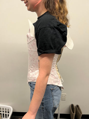 Loosely based off of French paintings, this 1776 gown presents all the glitz and glamour of the late Rococo period. Using three historical patterns from Janet Arnold’s first book, eleven yards of silk taffeta and organza, and more faux diamonds than you can count, this gown quickly earned the nickname of ‘Rococo Barbie’. The underpinnings are comprised of pink rose coutil and pink linen. The patterns used for these garments were from Janet Arnold’s first book and Norah Waugh’s “Corsets & Crinolines”.